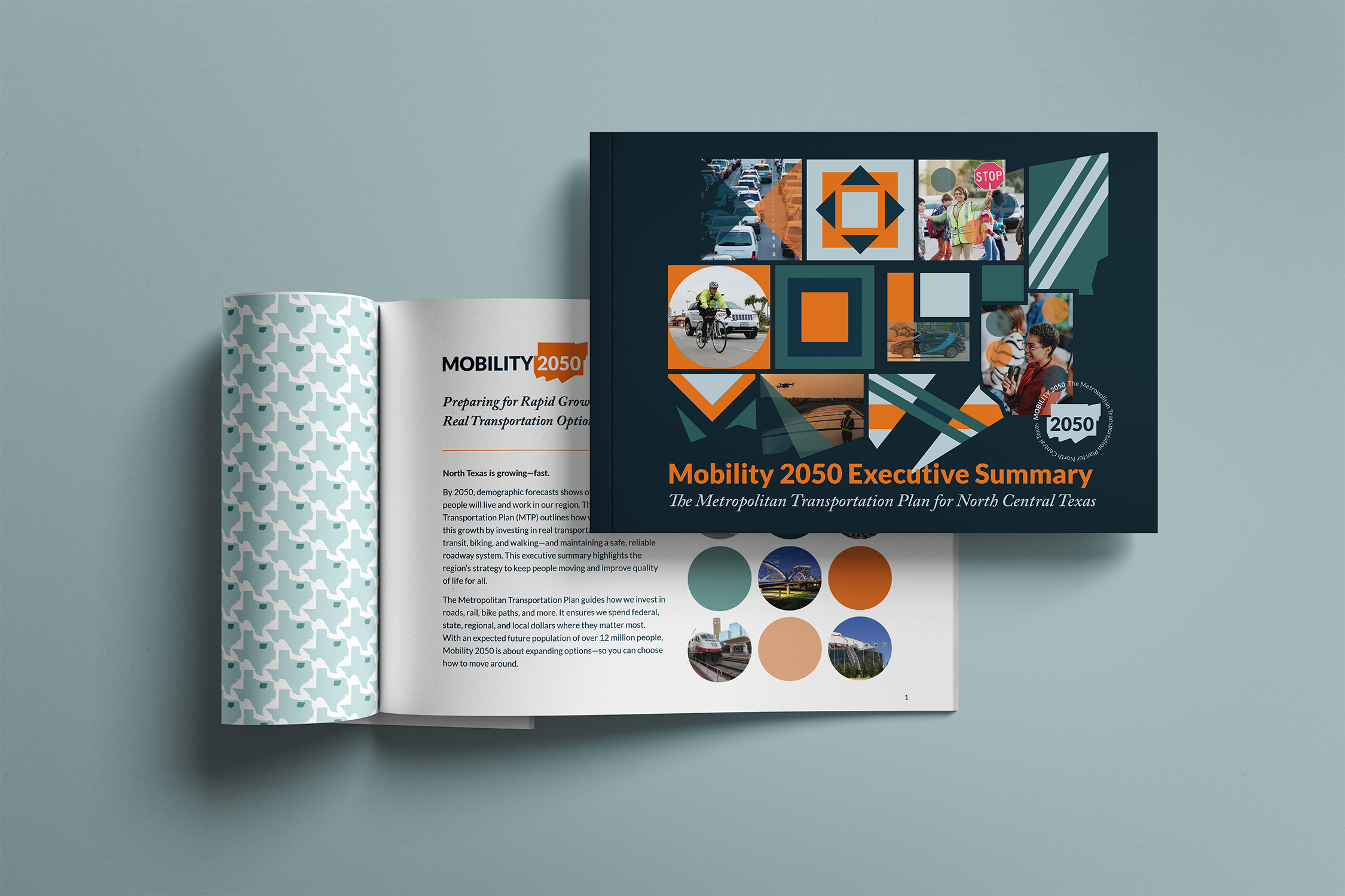 After two years of brand development, from logo, fonts and colors to illustrations, postcards, and timelines, the very last piece of the Mobility 2050 brand is the Executive Summary. The primary audience for this document is elected officials, so it needed to be elevated and professional while maintaining the colorful and sometimes playful designs we’ve used throughout the brand.